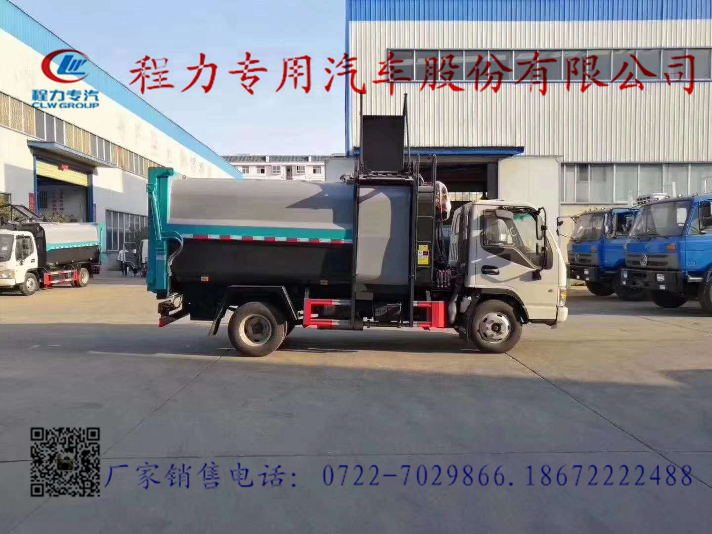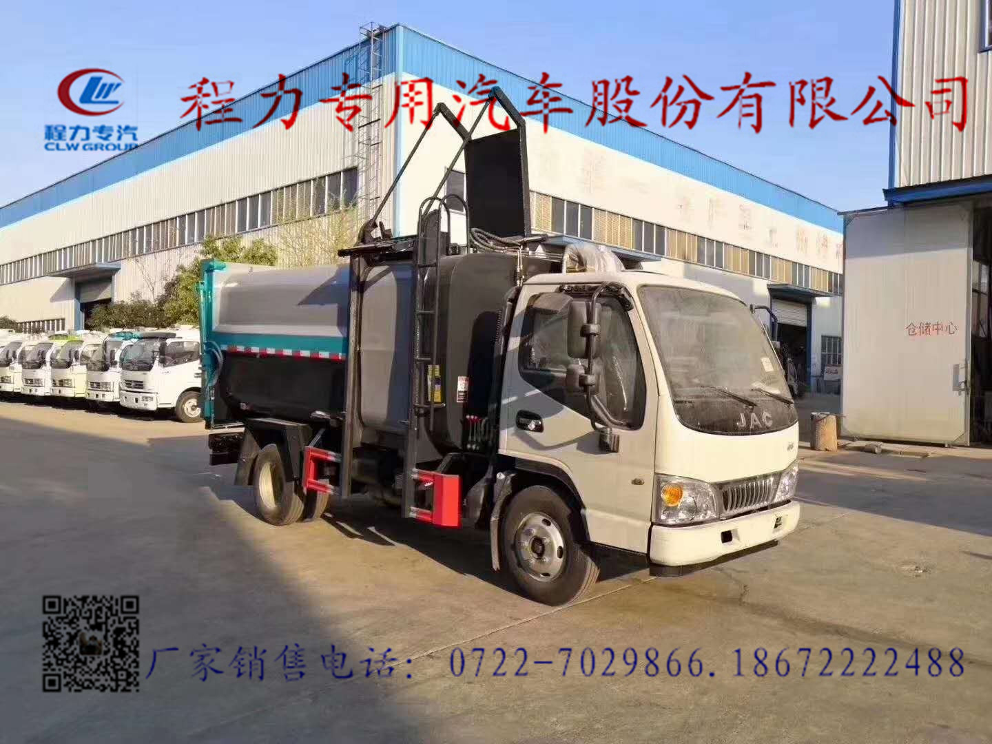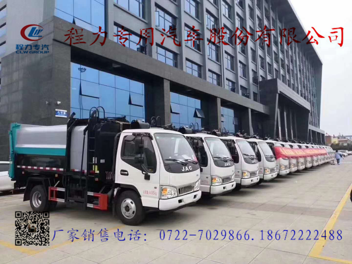湖北程力集團(tuán)江淮側(cè)裝壓縮垃圾車(自裝卸式垃圾車)批量發(fā)車,江淮掛桶垃圾車輛型號(hào):CLW5040ZZZH5.該車特點(diǎn):