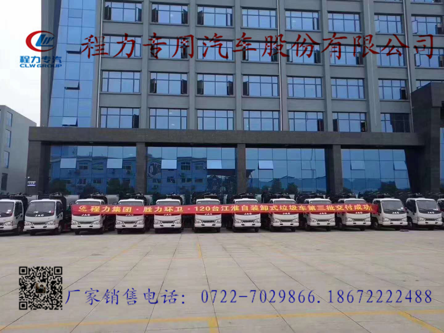 湖北程力集團(tuán)江淮側(cè)裝壓縮垃圾車(自裝卸式垃圾車)批量發(fā)車圖片