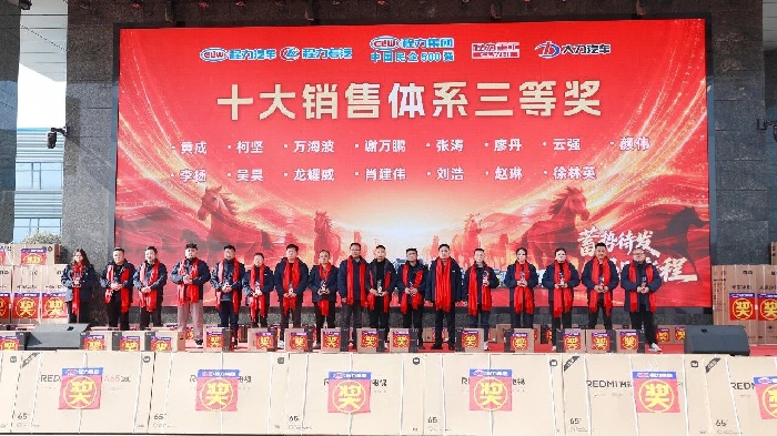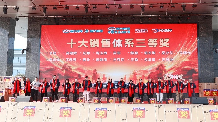 程力的每一步發(fā)展,都離不開合作伙伴的鼎力支持與攜手同行。接下來頒發(fā)的是“最佳供應(yīng)商”獎項,此榮譽授予在物料品質(zhì)、交付效率、合作協(xié)同中表現(xiàn)優(yōu)異的合作伙伴,他們是程力產(chǎn)業(yè)鏈上的重要伙伴,更是集團高質(zhì)量發(fā)展的堅實后盾。 銷售與經(jīng)營齊飛,服務(wù)攜創(chuàng)新共贏! 銷售與經(jīng)營體系表彰重磅登場。從金牌跟單員到十大銷售體系各獎項,從經(jīng)營激勵獎、進步獎到貢獻獎,階梯式榮譽與豐厚獎品——米家冰箱、空氣炸鍋、REDMI電視、筆記本電腦乃至出國游,充分彰顯集團以績論獎、重獎功臣的鮮明導(dǎo)向,激勵全員勇攀業(yè)績高峰。