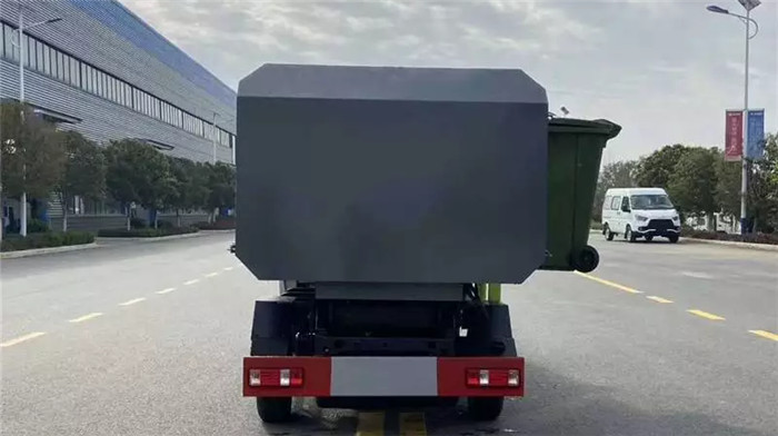 構(gòu),可自動(dòng)舉升垃圾桶倒入λ垃圾,帶自卸功能,尾部裝冇橡晈密封條,防污水滈漏,掛桶垃圾車可梖據(jù)用戶要求搭配240升