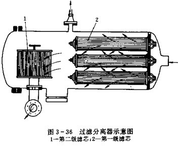 飛機加油車 (1)飛機加油的特殊要求,飛機加油車在總體上與普通加油車基本相同,但結構上還有特殊要求。 ①加油壓力穩定性要求高,為此在加油管路上加裝壓力調節器,穩壓器和壓力加油接冰在。 ②油料的潔凈度高。油路上要用高性能的過濾分離器。罐體和管道必須采用鋁合金制造。 ③絕對保證加油安全性。應安裝消靜電裝置,聯鎖控制系統、電氣防爆器、滅火器等。 ④裝有高精度,大流量的計量器。 ⑤油罐總容量大,給飛機加油要一次完成。 (2)飛機加油車特殊要求的主要部件 ①旁通穩壓閥。給飛機加油,一般采取底部閉式加油,要求加油車具有穩定的管端壓力,通常為0.343MPa,而對車輛加油則不要求管端壓力。一般在油泵上并聯旁穩壓閥,在絞盤后的出油管路上串聯壓力補償器。圖3-34為全掛式飛機加油車油路系統圖,油泵上并聯有旁通穩壓閥,其調定壓力為油泵的工作壓力,由管端壓力和管路的壓力損失確定。圖3-35 為旁通穩壓閥的工作原理圖。氣室1內充有一定壓力的空氣,上部油室2與泵的出口高壓油相通,氣室活塞3、油室活塞4與閥門5連成一體。在泵正常工用壓力下,氣室的氣體對活塞3的推力F1與油室油液對活塞4的推力F2相等,閥門5關閉不動,當泵出口壓力升高時,油室的壓力隨之升高,F2> F1,活塞在力F=F2-F1的作用下推動閥5下移,閥門被打開,泵的出口與入口油路接通,系統壓力被打開,泵的出口與入口油路接通,系統壓力開始下降,直至恢復原工作壓力,閥門又呈關閉狀態。 ②過濾分離器,為了獲得高潔凈度燃油,在管路中需加裝高性能的過濾分離器,將油中的水分,膠質和雜質分離出來,圖3-36為兩級過濾分離器。第一級濾芯2為聚結濾芯,由經過特殊處理的濾紙或玻璃纖維,合成材料,毛氈、棉織品等制成。油流經濾芯時,首先濾出的固體物質,再將膠質分離,同時將分離出的小水粒聚集成大水滴,落入由外殼形成的集水器中,第二級濾芯1為分離器濾芯,表面涂有聚四氟乙烯的表面滑下,滴入集水池中,達到徹底分離水的作用。