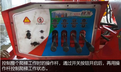控制整個爬梯工作時的操作桿,通過開關按鈕開啟后,再用操作桿控制爬梯工作狀態。