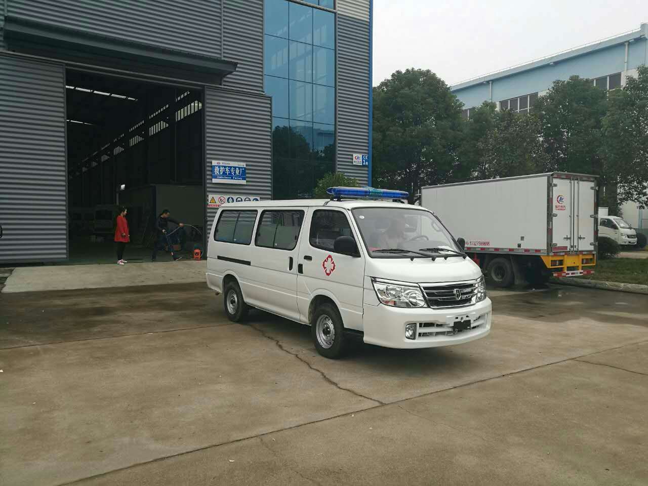 國5救護車(金杯轉運型救護車)SY5033XJH-D3S1BH(國五汽油機),功率:73.5kW,軸距:2590mm,輪胎型號:185R14,發動機型號:4G19,排量:2.0,帶前后空調,電動門窗,方向助力,后醫療艙配置(自動上車擔架,氧氣瓶5L,耐減,防滑,)