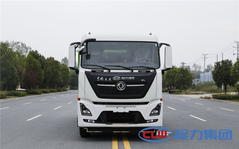東風天龍洗掃車副發動機驅動風機和高壓水泵,副發動機采用東風康明期6缸柴油發動機。 風機用8.0高壓離心風機,效率高、風量大,最高風量達23500m3/h。 東風天龍洗掃車高壓水泵采用同際知名T7012IR 型柱塞柱,流量合適,壓力高,允許最高壓力達10MPa,清水箱充分利用了車載空間,容積大,容積達12m3。 東風天龍洗掃車垃圾箱采用單層不銹鋼結構,傾翻卸料,帶高壓位自潔裝置。自潔裝置可在垃圾箱卸料時幫助卸料,清洗垃圾箱內部。 東風天龍洗掃車左右立掃為單掃盤,減少了掃刷數量和掃刷消耗量,能降低使用成本。左右立掃分開控制,可實現左掃、右掃和全掃等不同作業模式。寬吸嘴的吸口寬度達到2418mm,確保作業總寬度大于3.5mm。 湖北程力國六東風天龍后雙橋大型洗掃4個高度可調的吸嘴輪,能方面調整和保證吸嘴與路面間的合理間隙。吸嘴內高有噴水桿,盡可能多地將高壓洗滌噴嘴布置在吸嘴內部,不但清洗效果好,還能最大限度減少高壓水氣流沖起污物產生的二次污染。左右噴水桿安裝在吸嘴上,隨吸嘴升降,結構簡單緊湊,保證噴水桿的離地高度固定不變,達到最佳清洗效果。 東風天龍洗掃車開式液壓系統驅動左右立掃升降、左右掃肋旋轉、吸嘴升降、垃圾箱后門開閉、垃圾箱傾翻復位等機械動作。底盤變速箱側取力器驅動低壓水泵,實現灑水車的低壓沖洗功能。一鍵式作業起動和停機操作。 東風天龍大型洗掃車具有路面清洗、路面清掃、路緣清洗、路緣和路緣石立面洗刷、低壓沖洗、噴霧除塵等多功能。有“全洗掃”、 “左洗掃”、 “右洗掃”、 “全掃”、 “左掃”、 “右掃”6種作業模式可選擇。選擇“全洗掃”模式清洗廣場和路面,清洗效率高效果好,洗凈率達90%以上。選擇“左洗掃”或“右洗掃”模式清洗路面和路緣、洗刷路緣石立面。需要進行路面清掃或路面保潔作業時,可選擇掃路模式。需要噴霧除塵時,可開啟噴霧裝置,進行噴霧除塵作業?梢韵駷⑺囈粯訉β访孢M行低壓沖洗作業。 東風天龍大型洗掃車適用于城市道路、高速公路、廣場、機場、碼頭、遂道、橋梁、隔離墻避、路緣和路緣石立面的機械化清洗、清掃、噴霧降塵等清潔作業。