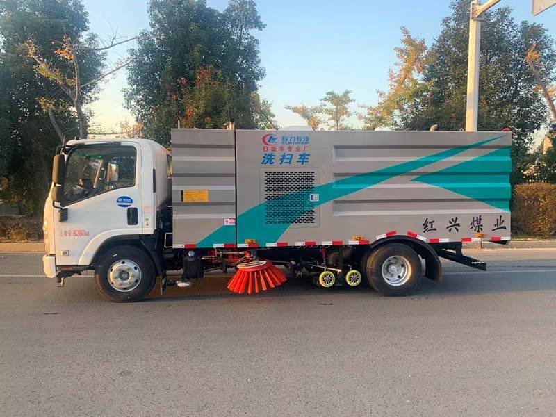 KV100P/KV600底盤配700P駕駛室:120馬力國六五十鈴4KH1CN6LB發動機配五十鈴5檔變速器,或132馬力國六4KH1CN6HB發動機配五十鈴6檔變速器,帶空調,方向助力,多功能液晶儀表盤,前橋3噸,后橋5噸,帶ABS,斷氣剎(或者油剎),駕駛室可翻轉,700副梁車型標配700R16輪胎車架幅高176MM,800副梁車型標配750R16輪胎車架幅高216MM。 湖北程力國六五十鈴8方洗掃車慶鈴五十鈴洗掃車配置: 1、帶2個中置掃盤;中置超寬吸嘴;江鈴64kW增壓副發動機;臺灣液壓閥;大力馬達;德國高壓水泵;威龍低壓泵;3mm不銹鋼垃圾箱;不銹鋼水箱;德國控制器;尾部箭頭燈;機油、垃圾箱、水箱均帶防溢或低位報警裝置;倒車及洗掃狀態室內監視器;多種語音提示;防傾倒垃圾翻車保護、檢修安全保護;20m高壓沖洗卷盤;刷臂轉動機構使用德國進口高新耐磨工程隔套,免打黃油;精密冷彎無縫液壓油管;CAN總線運動控制器一鍵電腦控制。 2、洗掃寬度3.2m;吸入粒度φ110mm。 多功能洗掃車具有路面清洗、路面清掃、路緣清洗、路緣和路緣石立面洗刷、低壓沖刷、噴霧除塵等多功能。有“全洗掃”、“左洗掃”、 “右洗掃”、 “全掃”、 “左掃”、 “右掃”等多種作業方式可選擇。選擇“全洗掃”方式清洗廣場和路面,清洗效率高作用好,洗凈率達90%以上。選擇“左洗掃”或“右洗掃”方式清洗路面和路緣、洗刷路緣石立面。需求進行路面清掃或路面保潔作業時,可選擇掃路方式。需求噴霧除塵時,可敞開噴霧設備,進行噴霧除塵作業?梢韵駷⑺囅嗤瑢β访孢M行低壓沖刷作業。 湖北程力國六五十鈴8方洗掃車多方位圖片: 湖北程力國六五十鈴8方洗掃車多功能洗掃車適用于城市道路、高速公路、廣場、機場、碼頭、遂道、橋梁、隔絕墻面、路緣和路緣石立面的機械化清洗、清掃、噴霧降塵等清潔作業。
