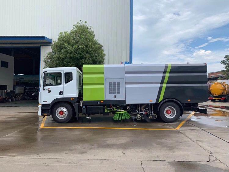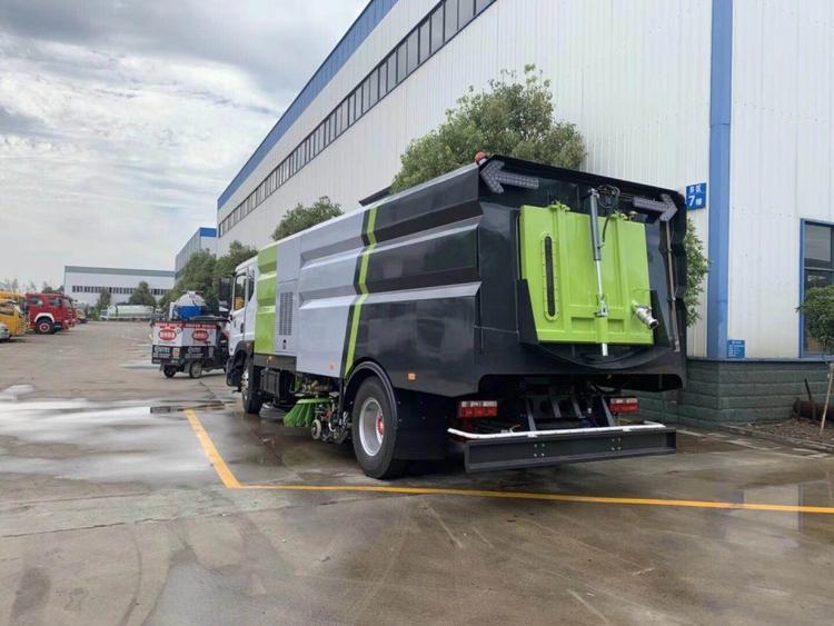 湖北程力東風(fēng)D9洗掃車(國(guó)六) 底盤配置: 采用東風(fēng)D9系列新款駕駛室,3950mm軸距,搭載國(guó)六(國(guó)VI)玉柴200馬力柴油發(fā)動(dòng)機(jī)/康明斯210匹馬力柴油發(fā)動(dòng)機(jī),6檔變速箱,9T后橋,295真空胎,方向助力、斷氣剎、電動(dòng)窗、中控鎖、ABS,原裝空調(diào),GB7258新規(guī)。 湖北程力東風(fēng)D9洗掃車(國(guó)六)上裝配置: 帶2個(gè)中置掃盤;中置超寬吸嘴;雙層吸塵筒; 康明斯170馬力副發(fā)動(dòng)機(jī);臺(tái)灣液壓閥;大力馬達(dá);德國(guó)高壓水泵 (前沖/側(cè)噴/中噴/后噴霧)/側(cè)沖洗水槍/垃圾箱自潔裝置); 萬向高壓路沿清洗;威龍低壓泵(前沖),氣動(dòng)球閥控制; 4mm不銹鋼垃圾箱;不銹鋼水箱;德國(guó)控制器;尾部箭頭燈; 機(jī)油、垃圾箱、水箱均帶防溢或低位報(bào)警裝置;倒車及洗掃狀態(tài)室內(nèi)監(jiān)視器; 多種語音提示;倒車自動(dòng)保護(hù)、防傾倒垃圾翻車保護(hù)、檢修安全保護(hù); 20m高壓沖洗卷盤;刷臂轉(zhuǎn)動(dòng)機(jī)構(gòu)使用德國(guó)進(jìn)口高新耐磨工程隔套,免打黃油; 冷彎無縫液壓油管;運(yùn)動(dòng)控制器一鍵電腦控制。洗掃寬度3.5m;吸入粒度p110mm。 湖北程力東風(fēng)D9洗掃車(國(guó)六)多方位圖片: