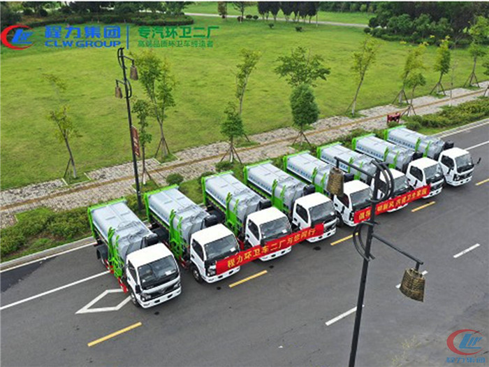 湖北黃岡環(huán)衛(wèi)處采購國六東風(fēng)福瑞卡5方餐廚垃圾車批量交車